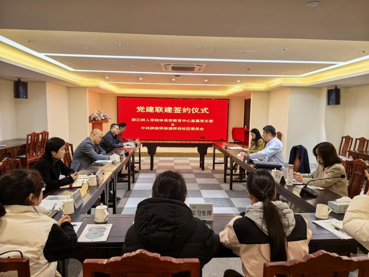2025年12月11日,浙江树人学院体美劳教育中心与拱墅区拱宸桥街道桥西社区正式签署党建共建协议,双方以“体育强体魄、美育润心灵、劳动育新人”为核心理念,以“歌唱艺术”为美育实践突破口,共同探索高校服务社区、赋能基层治理的创新路径。拱宸桥街道党工委委员、人武部部长占洪良、桥西社区党委书记项政、体美劳教育中心直属支部书记陈燮轲等出席签约仪式。